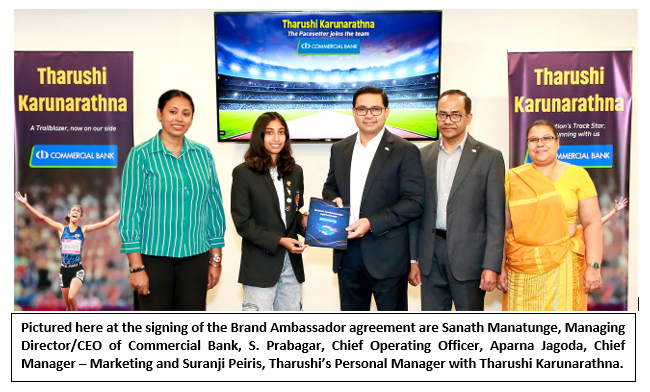 The Commercial Bank of Ceylon has appointed internationally acclaimed track athlete Tharushi Karunarathna as a Brand Ambassador.