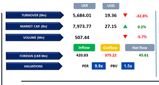 Investor interest in penny stocks persisted, continuing a trend observed last Friday. Meanwhile, foreign investors turned net buyers, registering a net inflow of LKR 45.6Mn.
