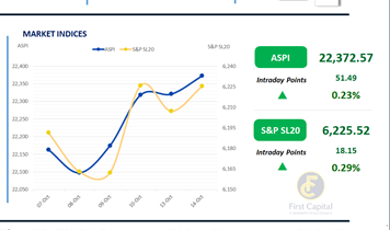 The Colombo Bourse closed in positive territory today, gaining 51 points to end at 22,373. Retail participation increased compared to the previous session, while HNW activity remained moderate.