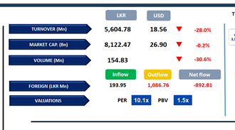 Market turnover amounted to LKR 5.6Bn, reflecting a 26% decline compared to the monthly average of LKR 7.5Bn. The Capital Goods sector led market activity, contributing 29% of total turnover, followed by the Materials and Diversified Financials sectors, which collectively accounted for 23%. Meanwhile, foreign investors remained net sellers, recording a net outflow of LKR 892.8Mn for the day.