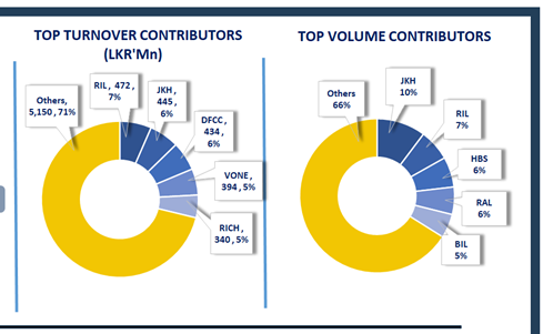 RICH, JKH, SFCL, VONE, and SPEN were among the key positive contributors to the index. Market turnover reached LKR 7.2Bn, reflecting a 6% uptick compared to the monthly average of LKR 6.8Bn.