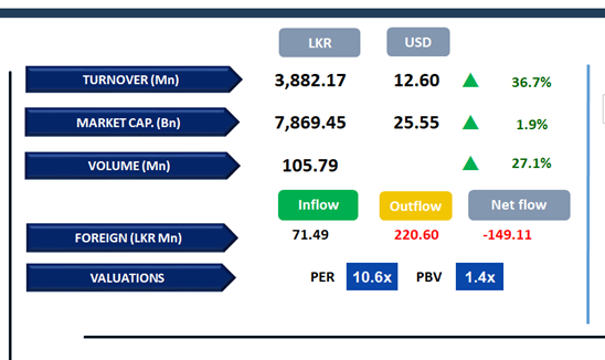HNW participation were low while retail investors showed a moderate interest, resulting in a daily turnover of around LKR 3.9Bn, which is 17% below the monthly average that stands at around 4.7Bn.