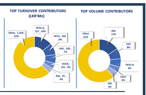 HNW and retail investors’ participation remained subdued, generating a low turnover of LKR 2.3Bn, which is about 38% below the monthly average of LKR 3.8Bn.
