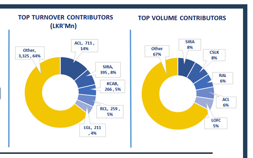 Daily turnover recorded at LKR 5.2Bn, which is about 44% above the monthly average level of LKR 3.6Bn. Retail investors took a major part in today’s market activity while HNW participation was at an average level.
