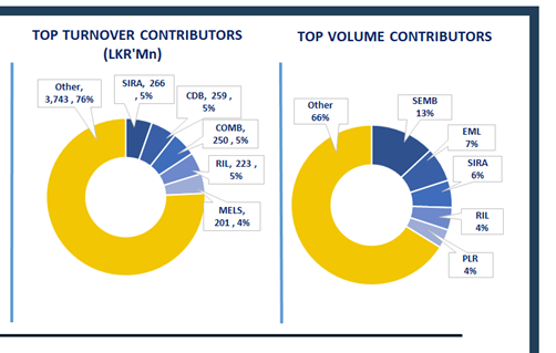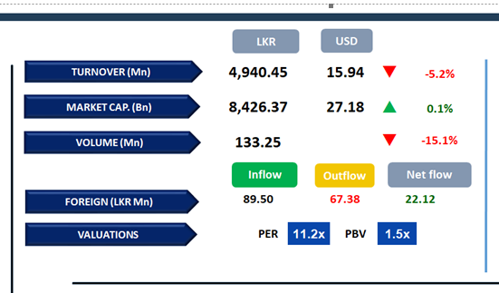 Daily turnover was recorded at LKR 4.9Bn, representing an increase of approximately 10.4% above the monthly average level of LKR 4.5Bn. HNW participation remained low, while retail activity was comparatively stronger.