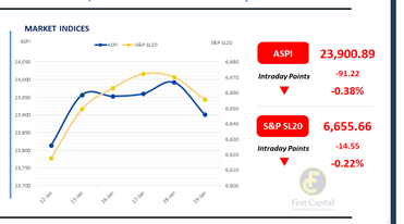 The market closed lower as profit-taking and weakness in blue-chip counters dragged both the ASPI and S&P SL20 into negative territory, reflecting cautious to mildly bearish investor sentiment with limited buying interest.