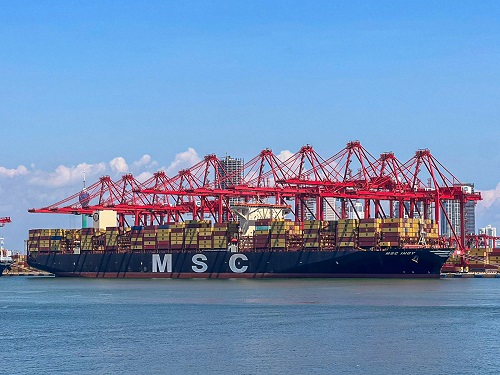The vessel, operated by Mediterranean Shipping Company (MSC), represents one of the larger container ships calling at Colombo, reflecting the terminal’s growing capability to efficiently handle ultra-large container vessels (ULCVs) and rising cargo volumes.