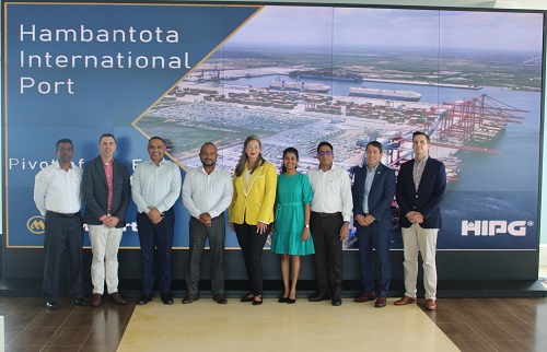 A high-level delegation from the Embassy of the United States in Sri Lanka made a courtesy call to Hambantota International Port (HIP) recently. The delegation, led by Ms Jayne Howell, Deputy Chief of Mission at the U.S. Embassy, also included Dustin R. Bickel, Regional Indo-Pacific Strategy Coordinator, Lieutenant Colonel Matthew House, Senior Defence Official, and Lieutenant Commander Ros Lary, Chief of the Office of Defence Cooperation.