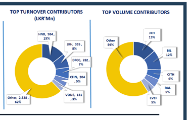 Daily turnover stood at around 4.1Bn, reflecting a 29% decline compared to the monthly average of LKR 5.7Bn. On a sectoral basis, the Banking sector dominated activity, accounting for 31% of total turnover, followed by the Capital Goods and Diversified Financials sectors, which collectively contributed 33%.