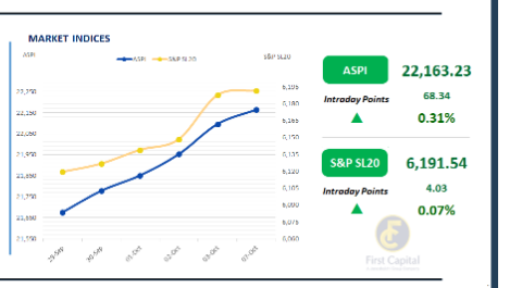 Banking sector counters, coupled with blue-chip companies exerted a positive pressure on the ASPI, which closed the day at 22,163, after registering a gain of 68 points.