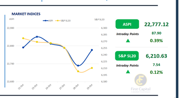 The Colombo Bourse rebounded from yesterday’s losses, with the ASPI closing at 22,777, marking an 88-point increase. Renewed investor interest was evident in WIND, following news of the company emerging as the lowest-cost bidder for Lot-1 of the Mullikulam wind power project.