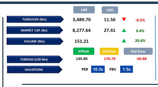 Foreign investors remained net sellers, recording an outflow of LKR 40.9Mn for the day.