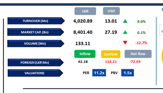Diversified Financials sector led the daily turnover with a share of 22%, followed by the Capital Goods, and Banking sectors collectively contributing 35%. Foreign investors remained net sellers, posting a net outflow of LKR 72.0Mn bringing the year-to-date foreign outflow to LKR 15.9Bn.