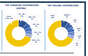 Retail investors were the primary participants during today’s session, while HNW activity appeared modest. Daily turnover stood at LKR 4.0Bn, marking a decrease of 34.5% over the monthly average of LKR 6.1Bn.