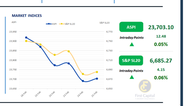 The Colombo Bourse experienced some morning volatility and a mild midday dip, while both indices recovered in the afternoon, suggesting selective buying interest rather than broad-based momentum.