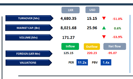 Meanwhile, the Capital Goods sector led daily turnover with a 32% share, followed by the Diversified Financials and Banking sectors, which collectively accounted for 30% of total turnover. Foreign investors remained net sellers, posting a net outflow of LKR 95.1Mn.