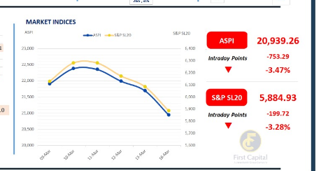 ASPI has now retreated 2,795 points (-11.78%) from its pre-war level of 23,734. S&P SL20 Index closed at 5,885, down 200 points, entering the 5,000 level for the first time since December 2025, and has recorded a cumulative decline of 11.3% from its pre-war level.