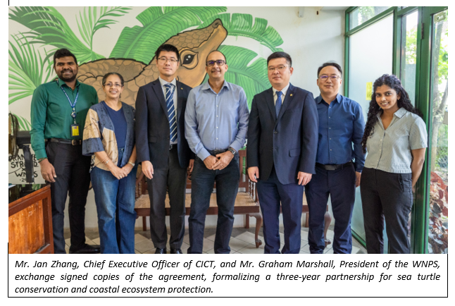 Colombo International Container Terminals (CICT) has entered into a three-year partnership (2025–2028) with the Wildlife and Nature Protection Society (WNPS) under the Turtle and Coastal Health United Programme (TACHUP) to protect sea turtles and restore coastal ecosystems along the Colombo Port City–Mount Lavinia coastline.