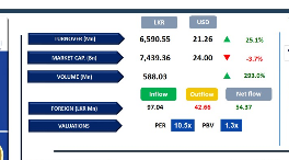 Daily turnover was at LKR 6.6Bn, which is an increase of 26.8% over the monthly average of LKR 5.2Bn. Diversified Financials sector led the daily turnover with a share of 26%, followed by the Capital Goods, and Banking sectors collectively contributing 38%. Foreign investors turned net buyers, posting a net inflow of LKR 54.4Mn.