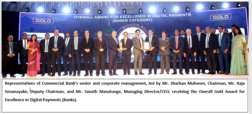 Commenting on these latest accolades, Mr Sanath Manatunge, Managing Director/CEO of Commercial Bank said: “As our ambitious digital transformation programme takes flight, this is just the beginning. Beyond the top prize, we are proud to have secured key Gold awards within category A. This historic achievement belongs to our incredible team and loyal customers, and we appreciate their unwavering support.”