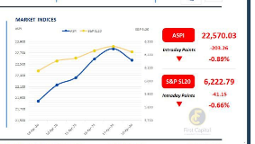Following the escalation in the geopolitical conflicts during the weekend and higher global oil prices, the Colombo Bourse recorded a steep fall during the early trading hours, which marginally recovered, however closed the day in negative territory at 22,570, marking a downtick of 203 points.